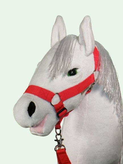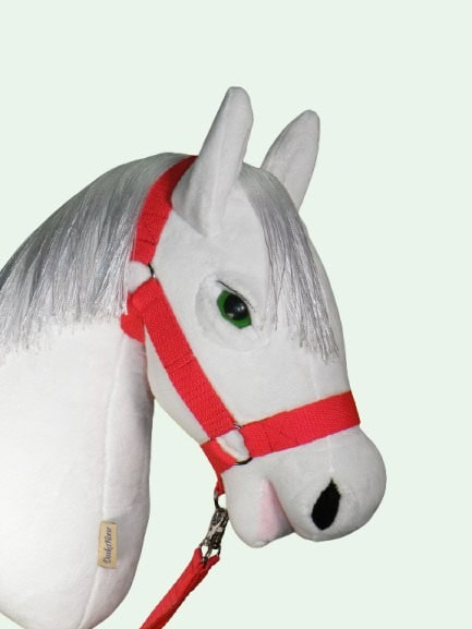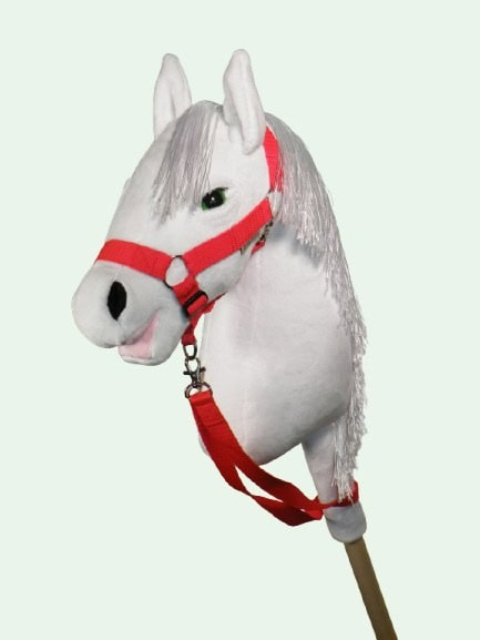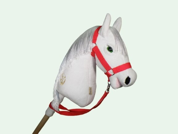 Ez a plüss anyagból készült seprűnyél ló fehér színével és fehér sörényével igazán különleges. Zöld szemei, szempillái és rózsaszín szája egyedivé varázsolják a megjelenését. A termékhez szár és kötőfék is tartozik. Ideális választás játékhoz, versenyekhez vagy ajándéknak.
